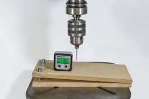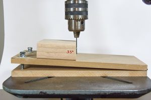 I have an adjustable table on my drill press that I use to drill at angles when I’m making inlays, a stacked bowl, or some boxes. However, it’s always a challenge to reset the table to horizontal after I rotate it. I designed this jig to allow me to drill at an angle without changing the drill press table.