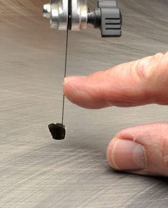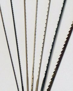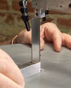 T is for TensionThere have been several methods proposed to determine proper blade tension. One author suggested achieving a specific musical note when the blade is “plucked” like a guitar string. I must be tone-deaf, because that technique has never worked for me. I rely on the first technique I was ever taught: the blade should not flex more than 1/16″ (2mm) when pushed from side to side or back and forth. Inadequate blade tension produces wandering blades and undesirable angles of cut. Too much tension increases the rate of blade breakage, so make sure you have adjusted the tension properly. |