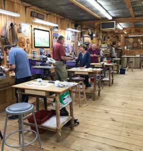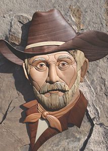 A: One of the best feelings is the camaraderie everyone develops during a class. Intarsia is still relatively unknown, so it’s a real treat to have nine people in the same room all doing what we love. We start every class with introductions, and then we talk about what we’re going to do. The beginner class students have the option to take a half-day scroll sawing class on Tuesdays. On their first day, Wednesday, we get the project cut out. On Thursday, we get most of the contouring/shaping done, and on Friday we add all of the details and go through the finishing process with the project I’m working on. The intermediate and advanced students cut the project out at home, which gives us three solid days to concentrate on shaping/contouring the project. Those projects have more details, like texturing and working with multiple raising shims. Abe Lincoln and the Cowboy were advanced class projects.