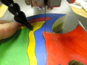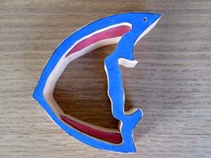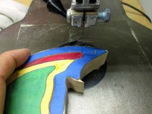 5: Attach a copy of the fish to the body. Use the #5 blade in the scroll saw to carefully cut the inner fish from the body wall (Line C). |