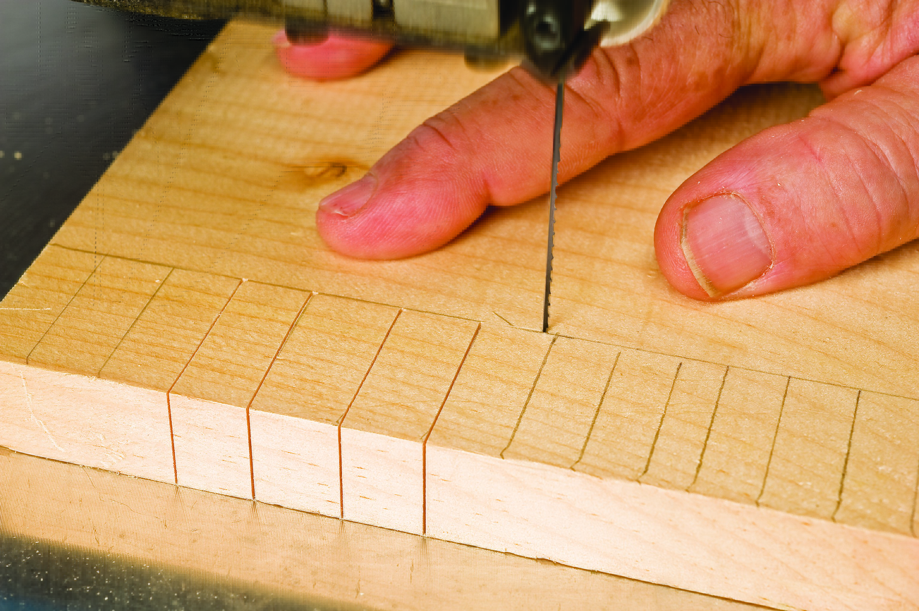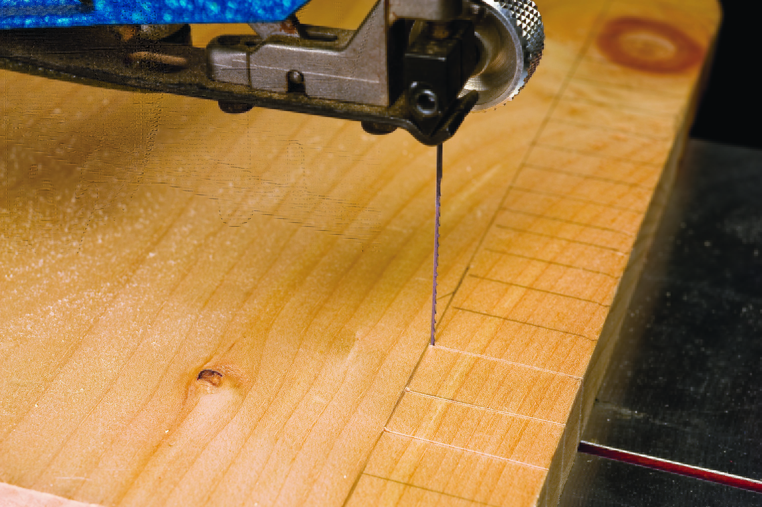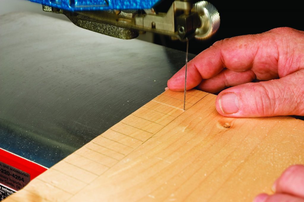 When you first turn on your scroll saw, practice cutting stair steps or a city skyline in a piece of scrap wood. This gets you warmed up and ready to create crisp sharp corners.