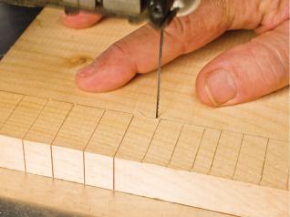 When you first turn on your scroll saw, practice cutting stair steps or a city skyline in a piece of scrap wood. This gets you warmed up and ready to create crisp sharp corners.