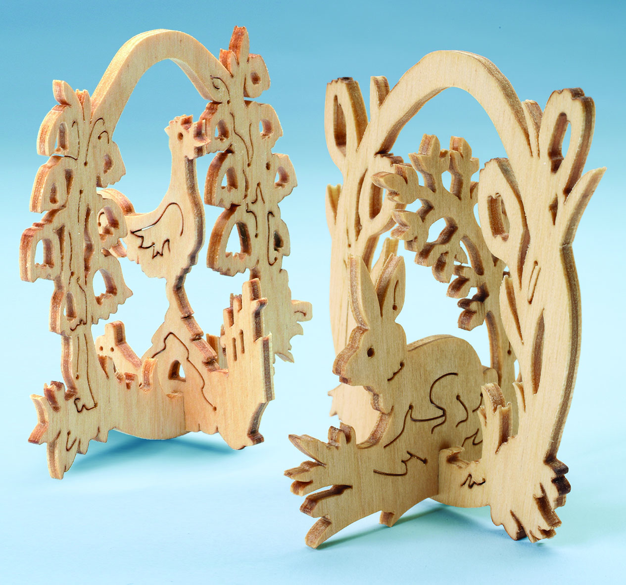 This set of interchangeable Easter ornaments will be a great addition to your spring decorating—and since they can be stack cut, they make ideal sale or gift items. They aren’t difficult to make, but they do require some careful and intricate scrolling.