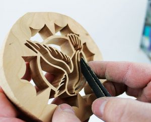 Growing up, Christmas was a huge deal in my family. Every room of the house was decorated. Every window had electric candles, and even the front yard was covered in Christmas décor. That’s probably why so many of my designs revolve around this holiday. I love giving handmade projects to my friends and family every year, and these fretwork snowflakes look great hanging on the tree. But if you fill the openings with some colored resin and hang them in your window, you can take them to a whole new level, as light shines through them to create a stained-glass effect. This project will show you how to pour small amounts accurately so you can fill in any design like you’re coloring a picture.