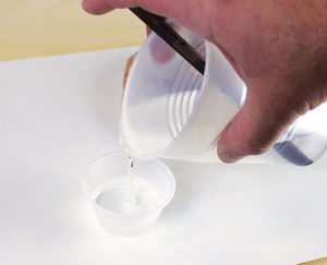 Step 5Mix the resin. Mix approximately 6oz. (177.4ml) of tabletop epoxy resin. Once mixed, separate it into several smaller cups. These will turn into the individual colors that will get poured. |