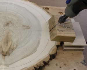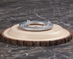 | Mix glue size as directed in the Gluing from Live-Edge Rounds section (see below) and apply it to the gluing areas of the ring underside and the base. Then apply full strength glue to the base only, keeping it about 1/4″ (6mm) in from the orienting marks to minimize squeeze-out. Position the ring on the base. Apply weight by applying a granite tile or heavy flat board to secure the bond. After five minutes, remove the unit and invert it carefully onto the flat surface. Use a toothpick to clean up squeeze-out, but also check for and remove any squeeze-out on the surface of the base.