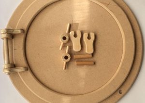 If you plan to display the porthole outdoors, choose exterior grade wood and paint. If you plan to display it inside, you can make it from whatever material you choose. Use plywood for the smaller parts (for strength), but you could use whatever wood you want for the larger pieces. I use clear acrylic plastic for the window glass. It can be cut with a scroll saw, but I suggest covering the plastic with blue painter’s tape to lubricate the blade. If the blade gets too hot while cutting, it can weld the plastic back together. When drilling acrylic, add a drop of lubricant to keep it from cracking.