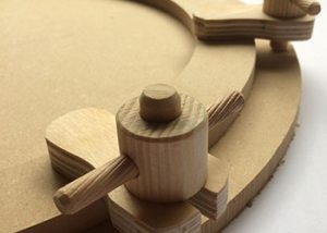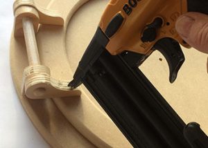 8: Glue and pin nail the locking assemblies together. Insert them through the locking tabs into the holes in the base.