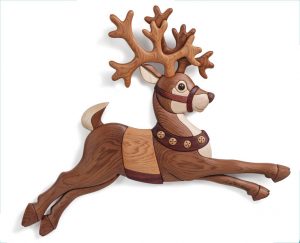Flying reindeer are as essential to the holidays as Santa himself; songs, classic cartoons, and even poems pay homage to these sprightly creatures. This intarsia design, caught at the moment of takeoff, is my addition to the mythos.