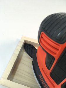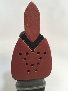 But where a traditional pad sander is square or rectangular, the Mouse has a rounded triangular pad with an extended tip. The shape allows you to fit the tool into tight areas, such as square corners or inside bowl and box rings. You can replace the shorter tip with a 3″ (7.6cm)-long pointed finger that fits into even smaller areas. In addition to being faster than sanding by hand, using the Mouse avoids the damage that can be caused by using a sanding drum in rotary tool.