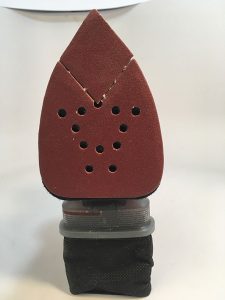 The tool has several other useful features. It comes with a collection bag that catches quite a bit of the sanding dust if you use perforated sandpaper. And, the 20-amp lithium ion battery not only holds a charge well, but it is interchangeable with Black & Decker’s other 20-amp batteries. When one battery runs out, you can swap it out and get right back to sanding. Black & Decker sells pre-cut, perforated, hook-and-loop-backed sandpaper in a variety of grits. If you took the time to make a template, you could cut your own sandpaper.