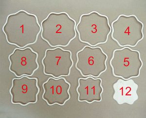 Cut the rings. This basket has 11 rings and a base for a total of 12 layers. They are all cut from four different patterns. Using a 1/16″ (2mm)-dia. bit, drill the 11 holes marked on the patterns. Then cut the rings and base. I used a #3 MGT blade. After cutting, hand-sand each ring with 180-grit sandpaper.