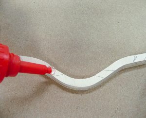 Glue the rings together. Start with Ring #1, facedown, and place Ring #2 on top. Adjust the fit and use a pencil to mark where the rings intersect. Take Ring #2 off and apply a dot of cyanoacrylate (CA) glue on all 24 intersections. Place Ring #2 back in place, using the marks as a guide. Apply pressure until dry. Repeat this process for the remaining layers.