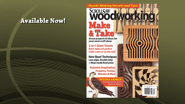 WEB-SSW64-Cover-fullThe Fall 2016 issue of Scroll Saw Woodworking & Crafts features a variety of projects, patterns, and features, as well as interesting techniques. This issue is a part of the regular magazine subscription. It is also available from your favorite retailer or from Fox Chapel Publishing, www.foxchapelpublishing.com, 1-800-457-9112.