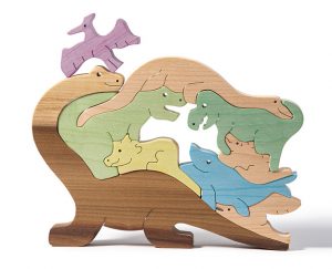 Want to retreat to prehistoric times? This sweet, stackable puzzle is just the ticket