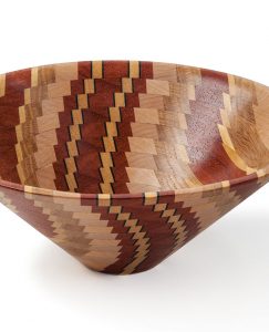 Use colorful wood scraps to make a traditional turned bowl