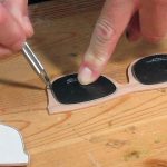 Step 7: Apply a thin layer of glue to the bottom of the top piece and place it in position. Position the stack on the form so the screw hole is in the middle of the frame below the nosepiece. |