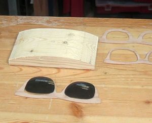 I began my research by examining the wooden sunglasses at stores. They are made from both solid and laminated wood, although laminated wood seems to be the most prevalent for strength. Some companies even cut sunglasses out of laminated skateboards. I tried many methods, but the one that worked best for me is using a simple bent lamination technique to create wayfarer-style sunglasses.