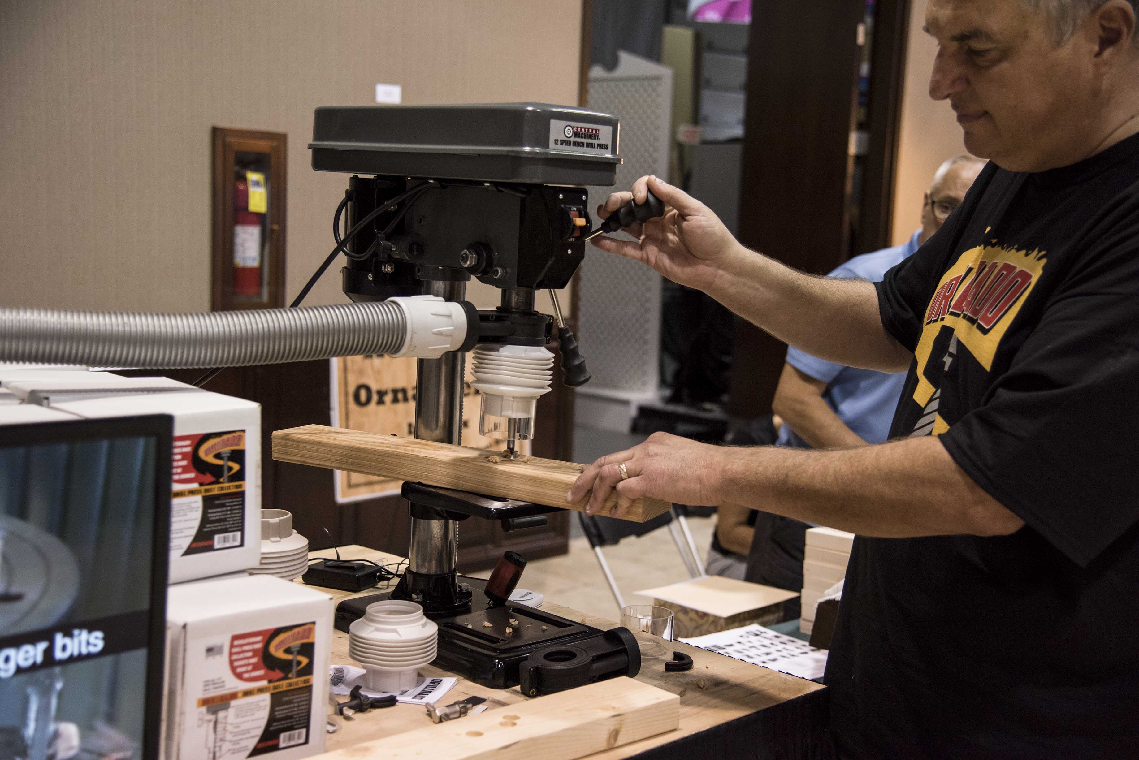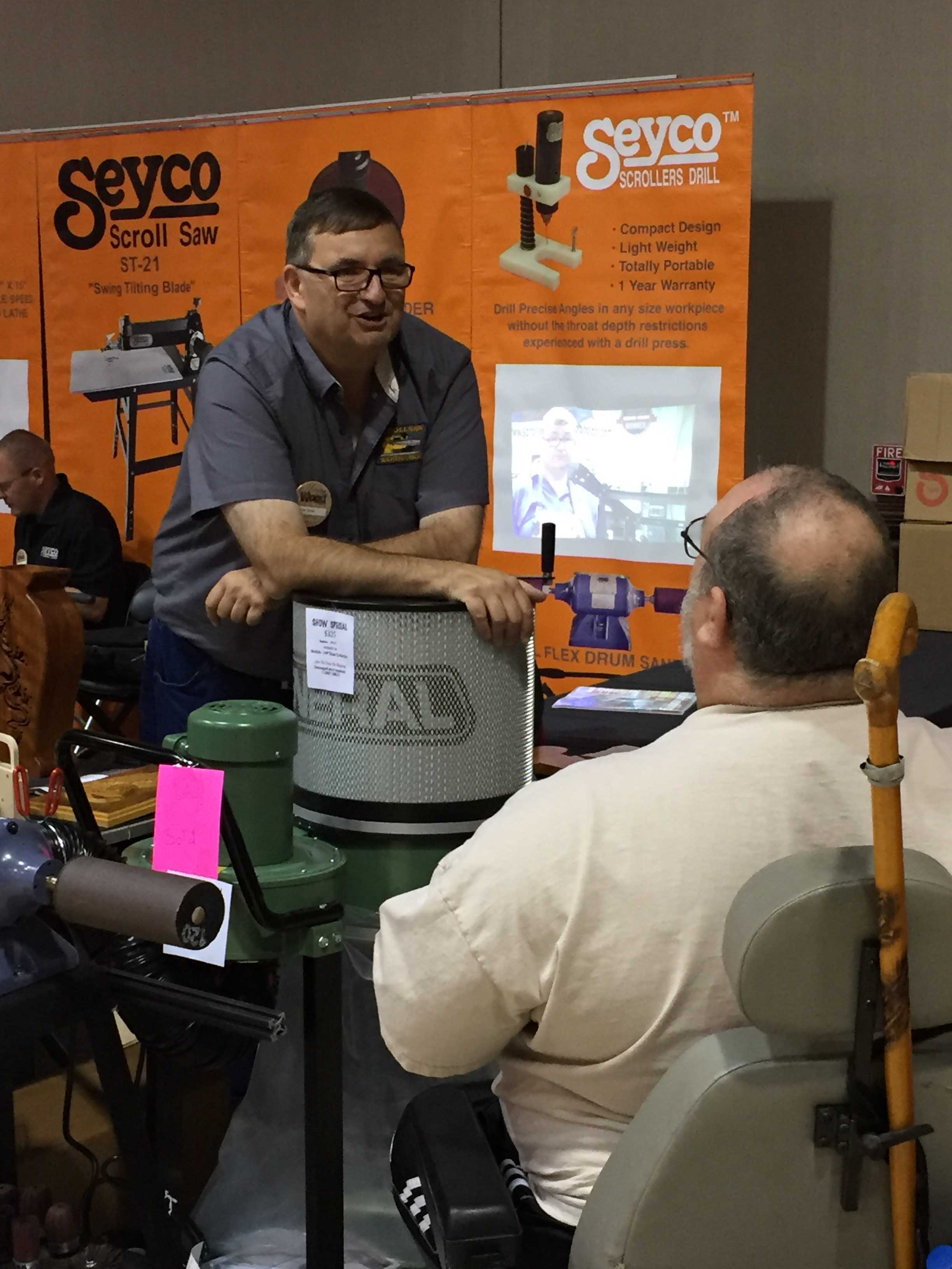 Among the other vendors, newcomer Erick Ortiz flew in from hurricane-ravaged Puerto Rico to exhibit at the show. Ray Seymore of Seyco brought and demonstrated his scroll saws and other tools. Misty Valestin, the new president of the Scrollsaw Association of the World (S.A.W.) welcomed more than a dozen new members over the course of the show. The popular pattern designing duo of Jacob and Wayne Fowler shared their work in the Fox Chapel Publishing booth and promoted their new book, the Woodworker’s Pattern Book.