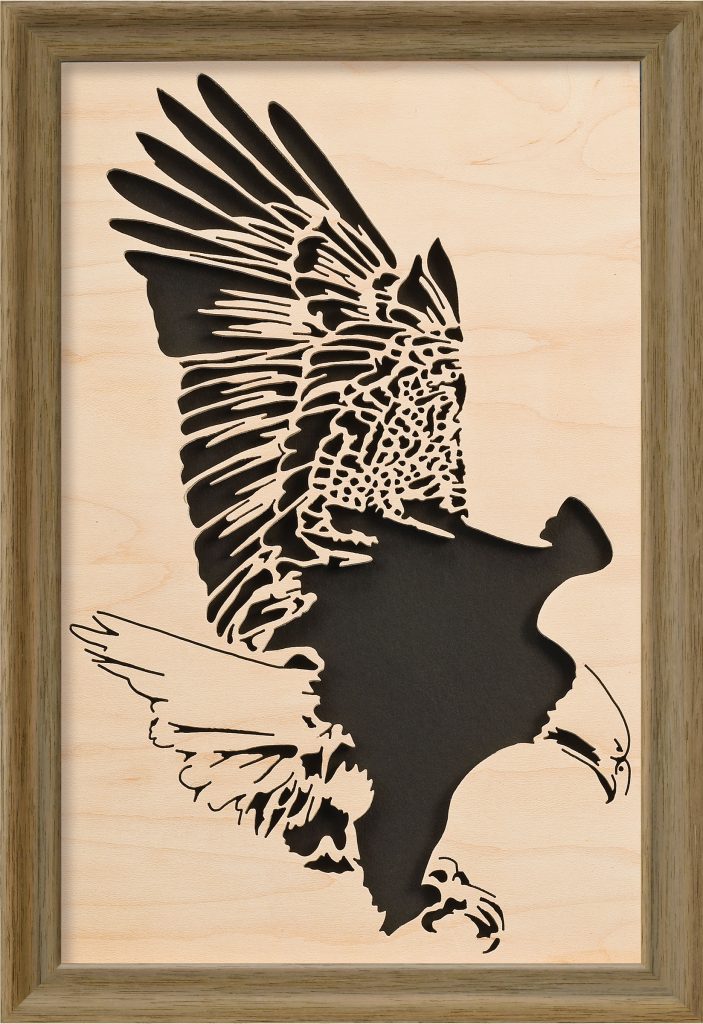 Capture the grace and majesty of eagles in flight with these beautiful portraits. My secret for cutting the frets is to use a spiral blade, which cuts in all directions and makes it easy to create the small shapes that combine to create the design. Transfer a section of the pattern to scrap wood and practice with the blades before you start the project—they have a different feel than traditional blades and you’ll want to get the hang of it before you cut the project.