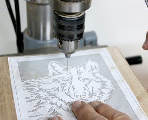 DrillingWhile you could use a power drill to create blade-entry holes for fretwork, a drill press is safer and more efficient. A handheld power drill is difficult to keep at 90 degrees for small holes, and you are likely to break a lot of small drill bits. I use a low-cost drill press from one of the big box home improvement stores and have never had any safety issues, because I do the following: • Always place a board, usually pine or another soft wood, on the drilling platform so you can drill through the workpiece without hitting the metal platform. • Always hold the workpiece firmly with one hand while you lower the drill to make the hole in the piece. You could also clamp the workpiece to the drill press table; however, you’ll have to shift position and reclamp for each new hole. • Always keep your hand holding the piece away from the moving drill bit. |