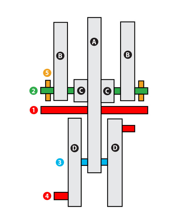 Assembling the RoosterRefer to the assembly drawing at right to assemble the project. Put a little glue in the top two holes of the body and insert the shoulder bar and wing lock. The ends of the dowels must protrude equally on both sides. Then slide the spacers onto both ends of the shoulder bar with the rounded sides of the spacers pointing upward. Slide the wings onto the shoulder bar, making sure they can move freely. Glue the wing brackets (labeled #5) into the drilled holes in the ends of the shoulder bar (labeled #2). Dab some glue into the holes near the perimeter of the wheels and insert the cams (labeled #4). Glue a wheel to the axle (labeled #3). Then, push the axle through the hole and glue the other wheel to the axle, leaving some room for free movement. The wheel cams must sit opposite each other, and the axle must move easily. Now your rolling rooster with flapping wings is complete! |